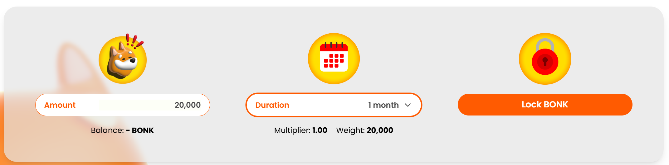输入质押金额(Amount)并选择锁仓时长,锁仓时长分别是 1、3、6、12 个月。确认无误后点击 Lock BONK 开始锁仓。