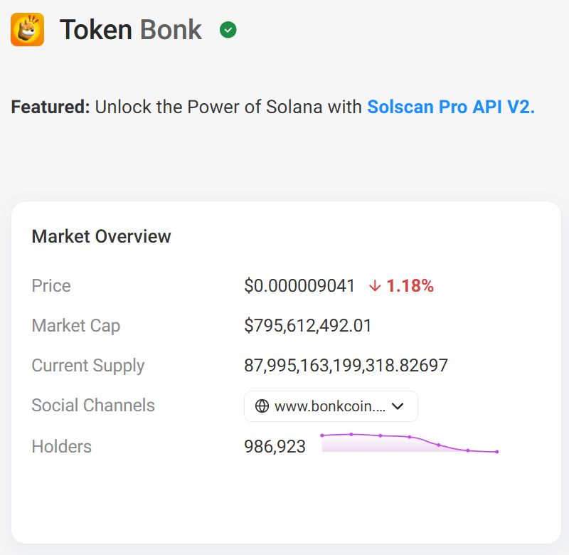 BONK DAO 已正式批准,一旦 Solana 链上的独立持币地址数达到 100 万个,将从国库中一次性销毁 1 万亿枚 $BONK$,目前独立持币地址数已达到 986923。可以通过solscan实时查看进度。