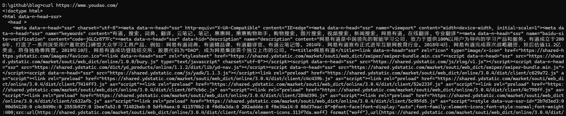 1 | curl https://www.youdao.com/ |